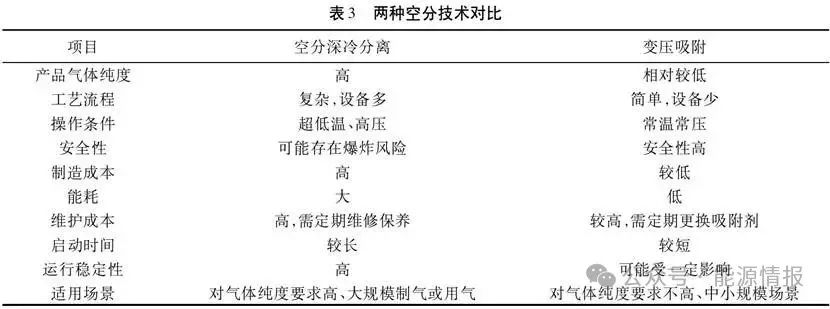 氮?dú)庵苽渲饕ㄟ^空氣分離設(shè)備從空氣中提取。空氣分離技術(shù)已非常成熟,主要包括深冷分離和變壓吸附兩種方法。深冷分離法通過低溫液化空氣,利用不同組分的沸點差異進(jìn)行分離;變壓吸附法則利用吸附劑對空氣中各組分的吸附能力差異,在壓力變化下實現(xiàn)分離。技術(shù)對比見表3。