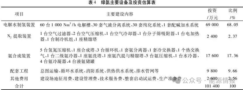3 綠氨生產(chǎn)的經(jīng)濟(jì)性分析