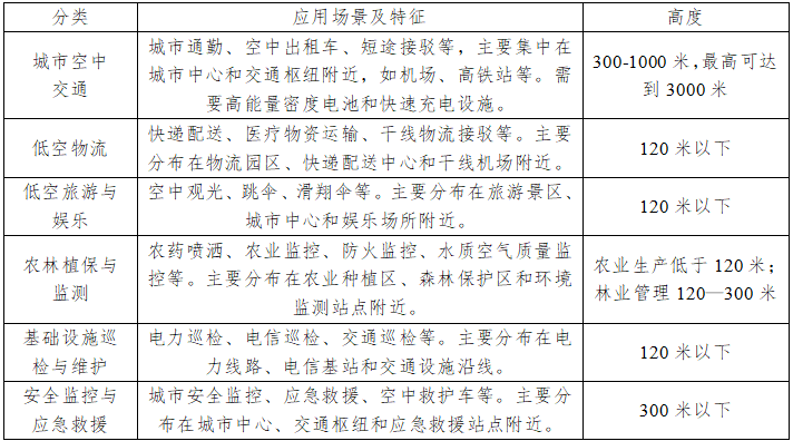表1:低空經(jīng)濟應用場景一覽表