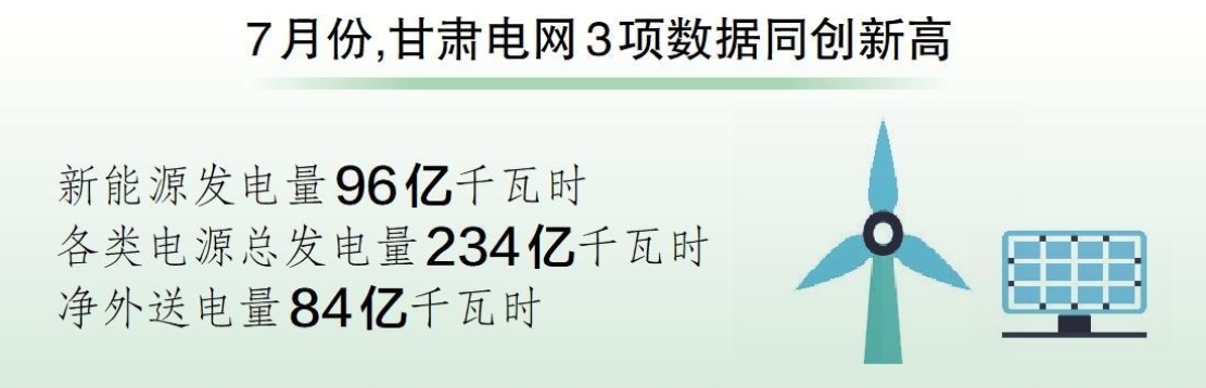 中國(guó)儲(chǔ)能網(wǎng)訊:8月1日,經(jīng)國(guó)網(wǎng)甘肅省電力公司統(tǒng)計(jì),7月份甘肅電網(wǎng)新能源發(fā)電量96億千瓦時(shí),首次超90億千瓦時(shí);各類電源總發(fā)電量234億千瓦時(shí),同比增加4.46%;凈外送電量84億千瓦時(shí),同比增加23.53%,3項(xiàng)數(shù)據(jù)同創(chuàng)新高。