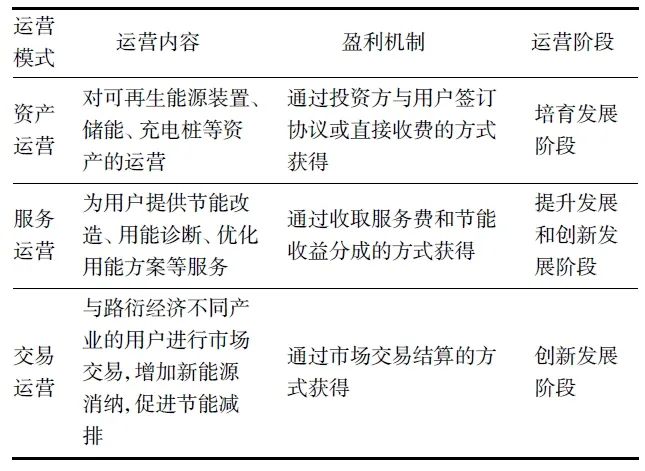 根據(jù)交能融合項(xiàng)目運(yùn)營(yíng)內(nèi)容的不同,分為資產(chǎn)運(yùn)營(yíng)及盈利機(jī)制、服務(wù)運(yùn)營(yíng)及盈利機(jī)制和交易運(yùn)營(yíng)及盈利機(jī)制。交能融合商業(yè)模式不同發(fā)展階段的運(yùn)營(yíng)方式及利益來(lái)源如下表所示: