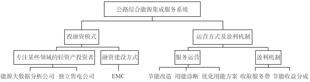 針對(duì)公路綜合能源集成服務(wù)系統(tǒng)項(xiàng)目,專注某些領(lǐng)域的輕資產(chǎn)投資者通過(guò)EMC方式進(jìn)行融資建設(shè),利用節(jié)能改造、用能診斷、優(yōu)化用能方案等手段,為用戶提高供能可靠性,節(jié)約能源支出,并通過(guò)收取服務(wù)費(fèi)和節(jié)能收益分成的方式獲得運(yùn)營(yíng)收益。場(chǎng)景內(nèi)容具體如下圖所示。