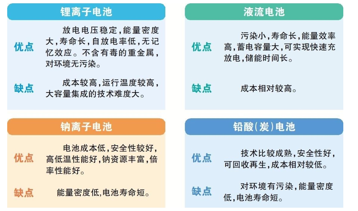 在眾多儲能技術(shù)中,電化學(xué)儲能技術(shù)發(fā)展速度相對較快。常見的電化學(xué)儲能技術(shù)主要有鋰離子電池、液流電池、鈉離子電池、鉛酸(炭)電池等類型。