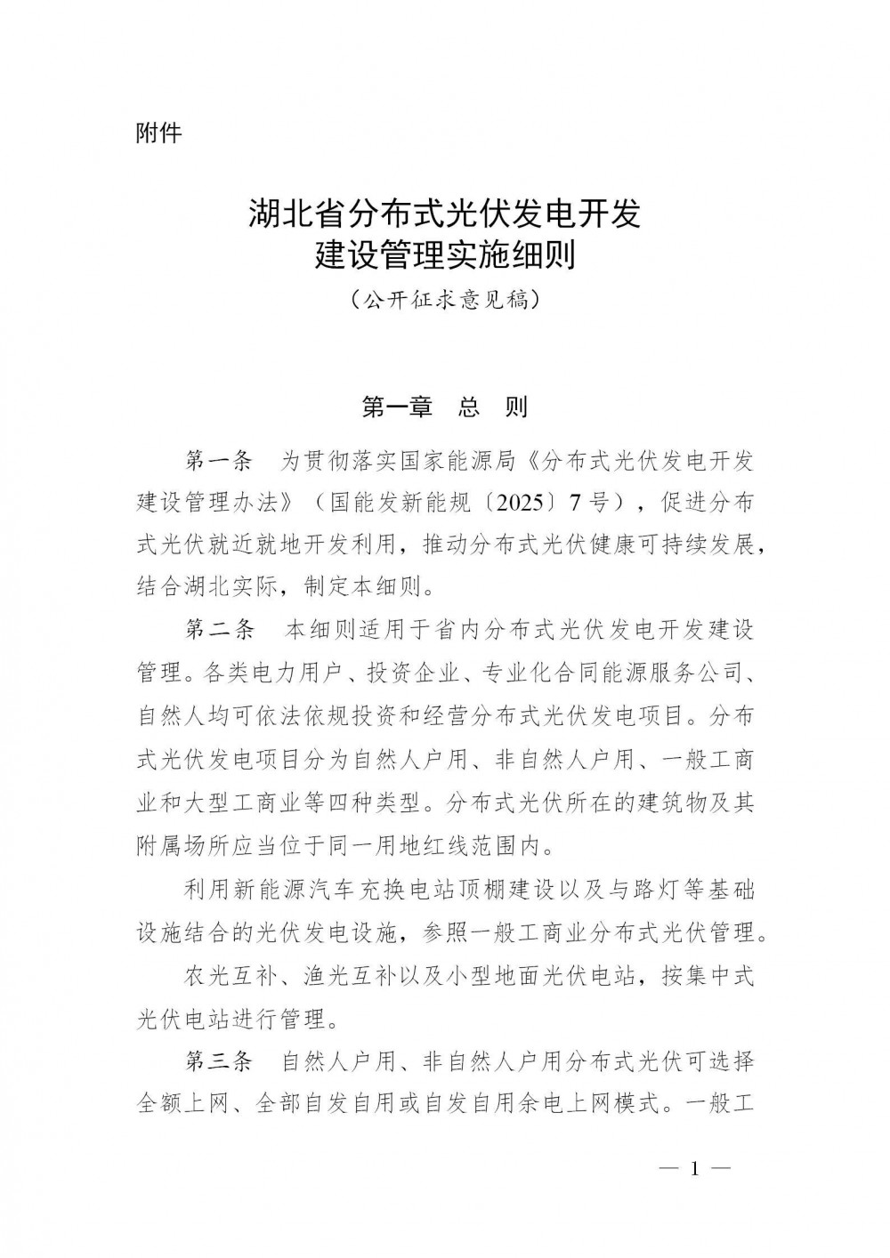附件:《湖北省分布式光伏發(fā)電開發(fā)建設管理實施細則(公開征求意見稿)》.docx
