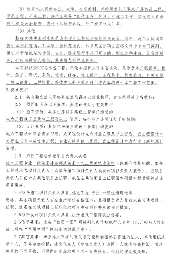 項(xiàng)目招標(biāo)范圍包括但不限于儲能電站項(xiàng)目的勘察設(shè)計(jì)、初步設(shè)計(jì)、施工圖設(shè)計(jì)及施工期間的技術(shù)服務(wù)(含送變電線路設(shè)計(jì)、施工現(xiàn)場指導(dǎo)等工作)等。