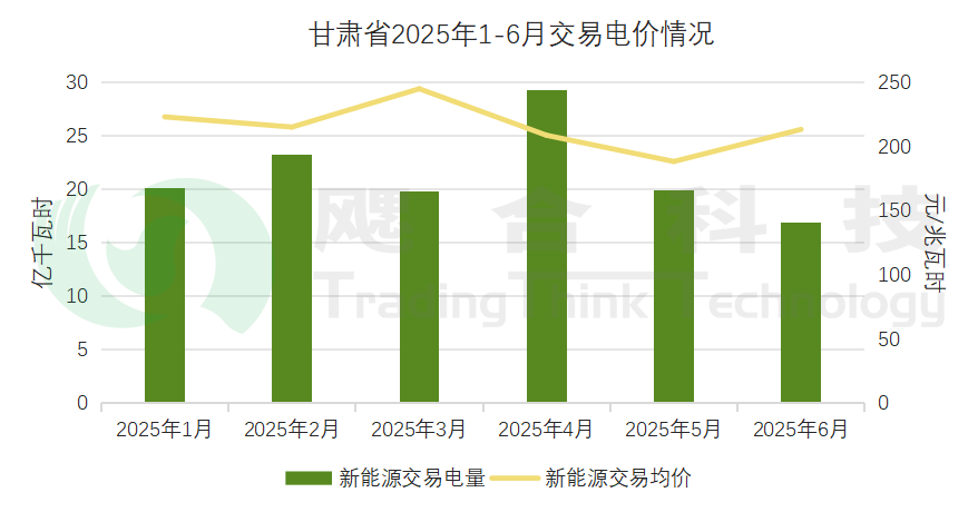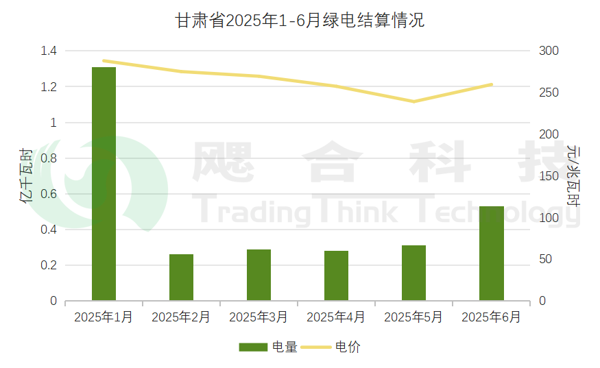 2025年1-6月甘肅省結算綠電電量2.98億千瓦時,結算均價264.96元/兆瓦時。