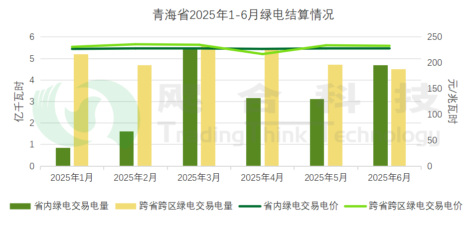 2025年1-6月青海省結算綠電情況如下:省內(nèi)綠電交易電量共18.93億千瓦時,結算均價227.67元/兆瓦時;跨省跨區(qū)綠電交易電量共30.12億千瓦時,結算均價231元/兆瓦時。