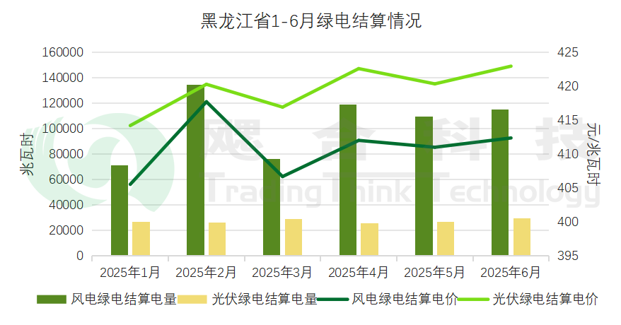 黑龍江省2025年1-6月新能源總計結算電量為186億千瓦時,風電1-6月結算均價為311元/兆瓦時,光伏1-6月結算均價為331元/兆瓦時。