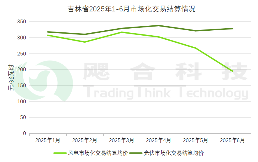 2025年1-6月主動入市風電結算均價386.33元/兆瓦時,被動入市風電結算均價342.22元/兆瓦時,被動入市光伏結算均價327.04元/兆瓦時。
