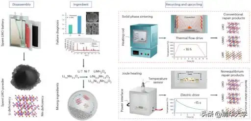 中國(guó)儲(chǔ)能網(wǎng)訊:鋰離子電池被廣泛應(yīng)用于諸多領(lǐng)域,但其有限的使用壽命帶來(lái)了資源緊張和環(huán)境風(fēng)險(xiǎn)等挑戰(zhàn),因此廢舊鋰離子電池的回收已然成為學(xué)術(shù)界和產(chǎn)業(yè)界關(guān)注的焦點(diǎn)。與從廢舊電池中提取關(guān)鍵金屬的傳統(tǒng)冶金方法不同,直接回收工藝可以修復(fù)受損材料,并通過(guò)有效的處理最大限度地運(yùn)用其價(jià)值。然而,現(xiàn)有直接回收方法依賴(lài)長(zhǎng)時(shí)間加熱以實(shí)現(xiàn)失效結(jié)構(gòu)的重排。同時(shí),鋰離子電池的性能基準(zhǔn)不斷提升,即使廢舊鋰離子電池直接再生能夠恢復(fù)其原始性能,往往也會(huì)與最新的市場(chǎng)要求存在差距,這兩大問(wèn)題對(duì)直接回收技術(shù)的發(fā)展與應(yīng)用提出了全新挑戰(zhàn)。