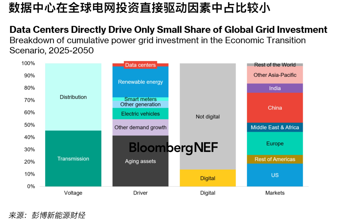 數(shù)據(jù)中心直接驅(qū)動(dòng)的全球電網(wǎng)累計(jì)投資份額
