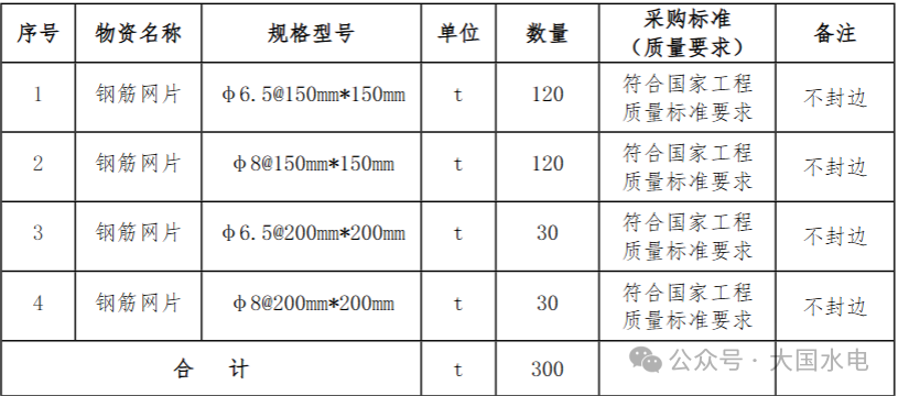 中國電建水電八局霍山抽水蓄能電站洞室及砂石加工系統(tǒng)項目鋼筋網(wǎng)片采購項目公開競價采購公告