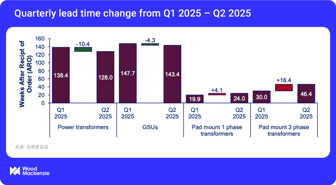 需求的激增使變壓器市場陷入嚴重短缺,供應(yīng)完全無法滿足迅猛增長的需求。根據(jù)伍德麥肯茲對年度供需的估算,目前電力變壓器和配電變壓器的供應(yīng)缺口已分別達到30%和6%。