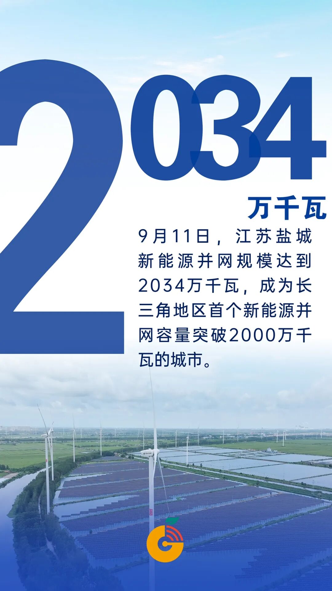 9月11日,隨著國(guó)信大豐85萬(wàn)千瓦海上風(fēng)電第二批次機(jī)組并網(wǎng),鹽城新能源并網(wǎng)規(guī)模達(dá)到2034萬(wàn)千瓦,成為長(zhǎng)三角地區(qū)首個(gè)新能源并網(wǎng)容量突破2000萬(wàn)千瓦的城市,標(biāo)志著中國(guó)經(jīng)濟(jì)最活躍的長(zhǎng)三角地區(qū)綠色轉(zhuǎn)型步伐正不斷加快。