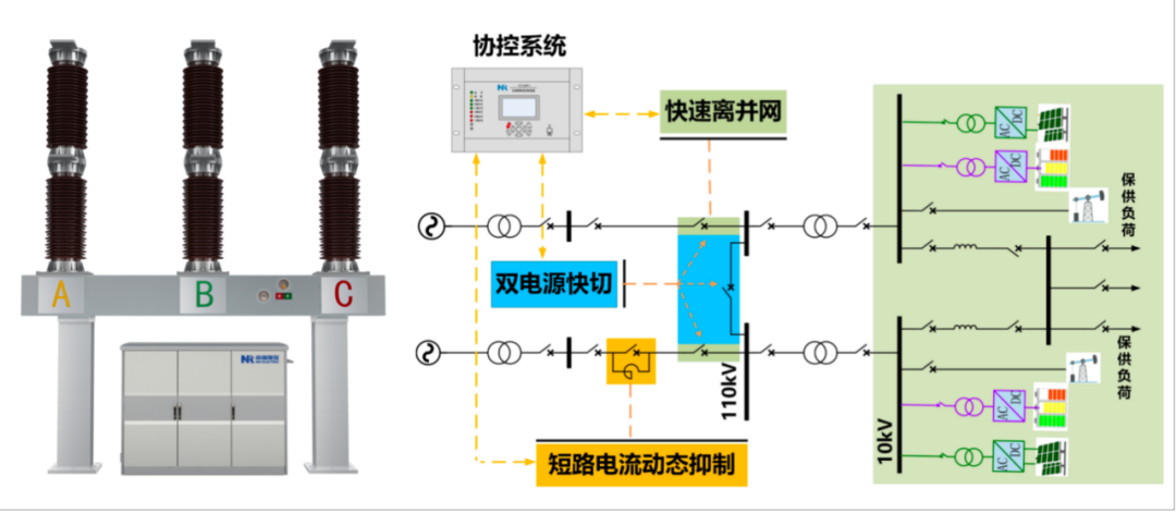 南瑞繼保研制的PCS-8351環(huán)保型126千伏快速斷路器采用高效電磁斥力機(jī)構(gòu),通過環(huán)保氣體絕緣,實(shí)現(xiàn)全無氟化設(shè)計,兼具快速開斷與綠色環(huán)保雙重優(yōu)勢。其分閘時間小于1.5毫秒,額定短路開斷電流高達(dá)50千安,全開斷時間不超過15毫秒,開斷短路電流直流分量超80%。結(jié)構(gòu)兼容現(xiàn)有瓷柱式斷路器,支持便捷改造與替換。可廣泛應(yīng)用于電網(wǎng)短路電流動態(tài)抑制、一二次融合雙電源快速切換、新能源快速離并網(wǎng)等場景,顯著提升電網(wǎng)運(yùn)行可靠性與靈活性。