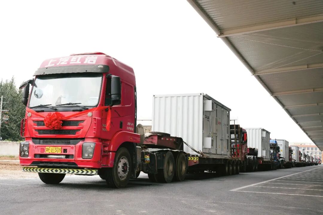 同一時(shí)刻,另一場(chǎng)“能源接力”也正在上演。河北科力遠(yuǎn)保定工廠啟動(dòng)了200MWh儲(chǔ)能系統(tǒng)產(chǎn)品交付工作。隨著指令下達(dá),起重機(jī)將大型儲(chǔ)能柜吊裝至重型卡車(chē)上。中午13點(diǎn)18分,在河北科力遠(yuǎn)總經(jīng)理賈文杰及公司員工的共同注視下,一輛輛滿(mǎn)載儲(chǔ)能柜的卡車(chē)組成“能源長(zhǎng)龍”,正式奔赴山東臨沂的羅莊獨(dú)立儲(chǔ)能電站項(xiàng)目。