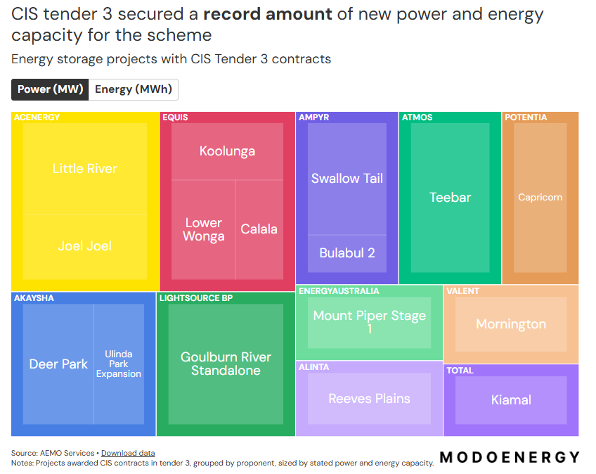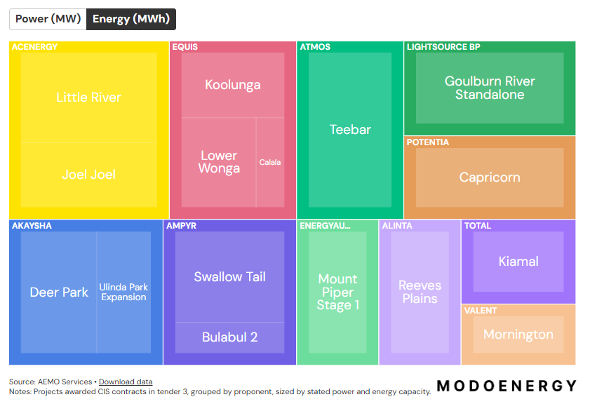 ? CIS第三輪招標(biāo)為澳大利亞國(guó)家電力市場(chǎng)(NEM) mainland地區(qū)電池儲(chǔ)能項(xiàng)目授予4.13吉瓦容量,創(chuàng)下電池招標(biāo)規(guī)模之最