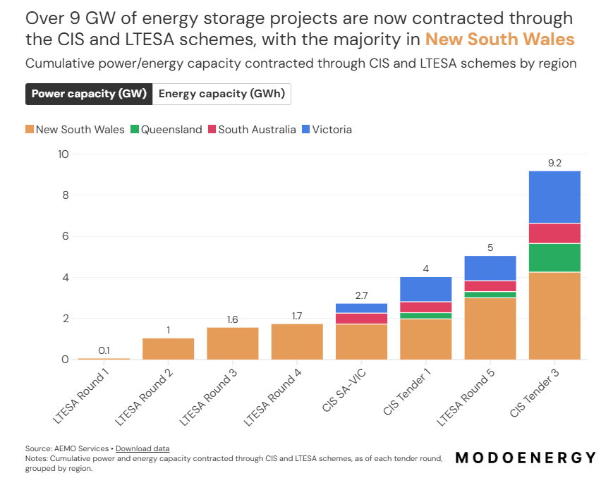 ? CIS與LTESA招標(biāo)已支持超過(guò)9.2吉瓦儲(chǔ)能項(xiàng)目,其中大部分位于新南威爾士州