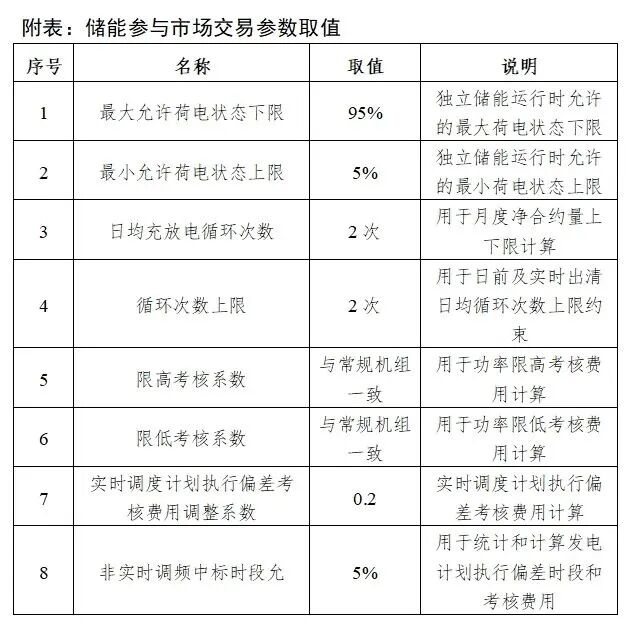 獨(dú)立儲(chǔ)能以充電和放電兩個(gè)獨(dú)立交易單元參與中長(zhǎng)期電能量交易,充電交易單元參照用電側(cè)購(gòu)電單元管理(不可被售電公司代理),放電交易單元參照發(fā)電側(cè)售電單元管理。儲(chǔ)能參與市場(chǎng)交易參數(shù)取值詳見附表。