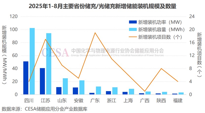 據(jù)CESA儲(chǔ)能應(yīng)用分會(huì)不完全統(tǒng)計(jì),2025年1-8月,國(guó)內(nèi)共有109個(gè)儲(chǔ)充/光儲(chǔ)充新增并網(wǎng)項(xiàng)目,數(shù)量同比增長(zhǎng)81.67%,配儲(chǔ)規(guī)模達(dá)137MW/295MWh,規(guī)模同比增長(zhǎng)194.32%(功率)/223.1%(容量)。