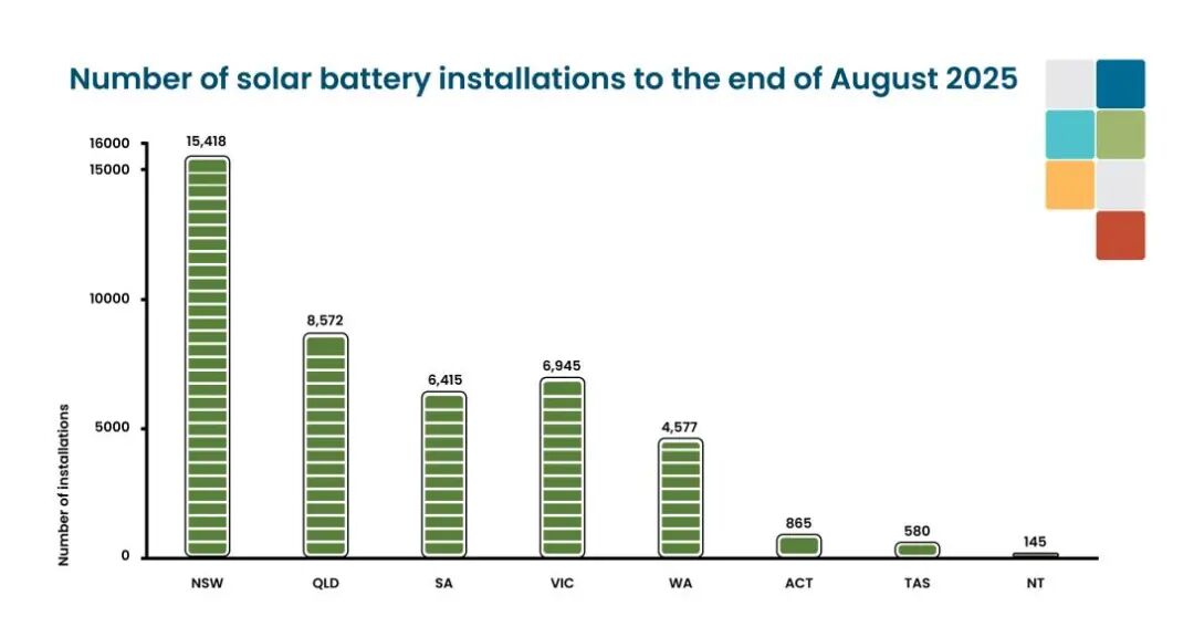 相比之下,戶用儲能的安裝量遠低于屋頂太陽能。截至2025年上半年,澳大利亞全國累計安裝了27.1萬臺戶用電池。