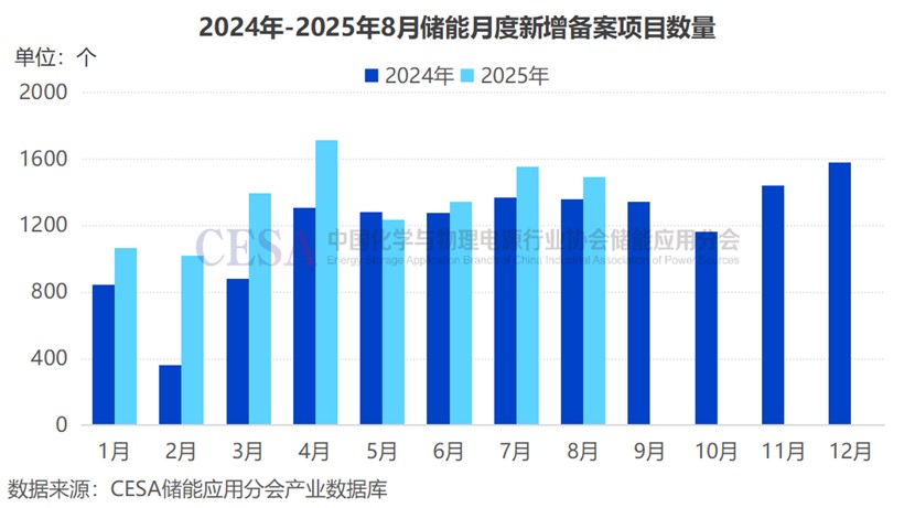 2025年1-8月國(guó)內(nèi)新增備案新型儲(chǔ)能項(xiàng)目數(shù)量已高達(dá)10822個(gè),數(shù)量同比增長(zhǎng)24.56%。
