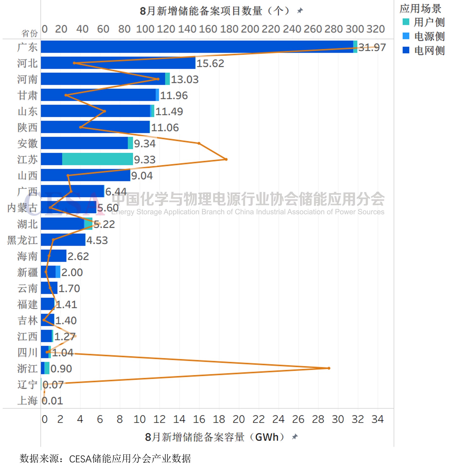 圖 2025年8月各省儲(chǔ)能新增備案項(xiàng)目容量