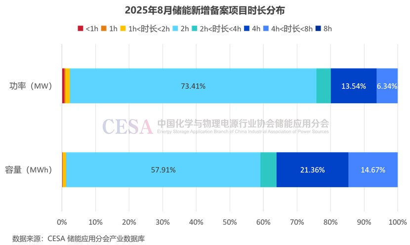 2025年8月,國(guó)內(nèi)新增備案儲(chǔ)能項(xiàng)目中,61.49GW/155.95GWh時(shí)長(zhǎng)明確,平均時(shí)長(zhǎng)2.54小時(shí)。