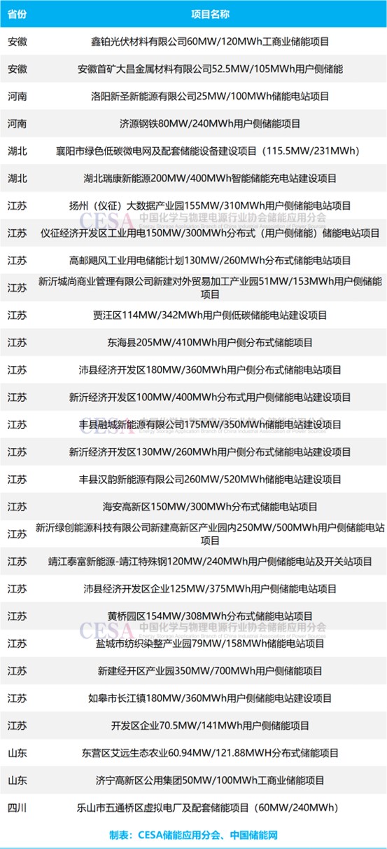 表 2025年8月新增百兆瓦時(shí)級(jí)工商業(yè)儲(chǔ)能項(xiàng)目