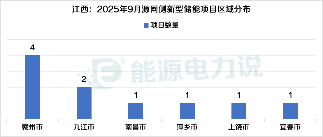 項(xiàng)目地分布方面,10個(gè)項(xiàng)目分布贛州、九江、南昌、萍鄉(xiāng)等6個(gè)地市。其中,贛州項(xiàng)目4個(gè),總規(guī)模500MW/1000MWh。九江項(xiàng)目2個(gè),總規(guī)模105MW/210MWh。