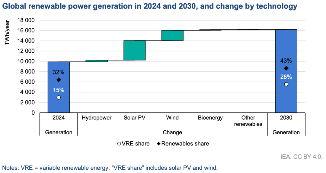 中國儲能網(wǎng)訊:國際能源署(IEA)發(fā)布報告《Renewables 2025 Analysis and forecasts to 2030》(可再生能源2025:2030年分析與預(yù)測),系統(tǒng)分析了全球可再生能源的發(fā)展現(xiàn)狀與未來趨勢。報告基于詳實的數(shù)據(jù)和政策評估,對2030年前的可再生能源部署進行了全面預(yù)測,揭示了技術(shù)、市場和政策層面的關(guān)鍵動態(tài)。