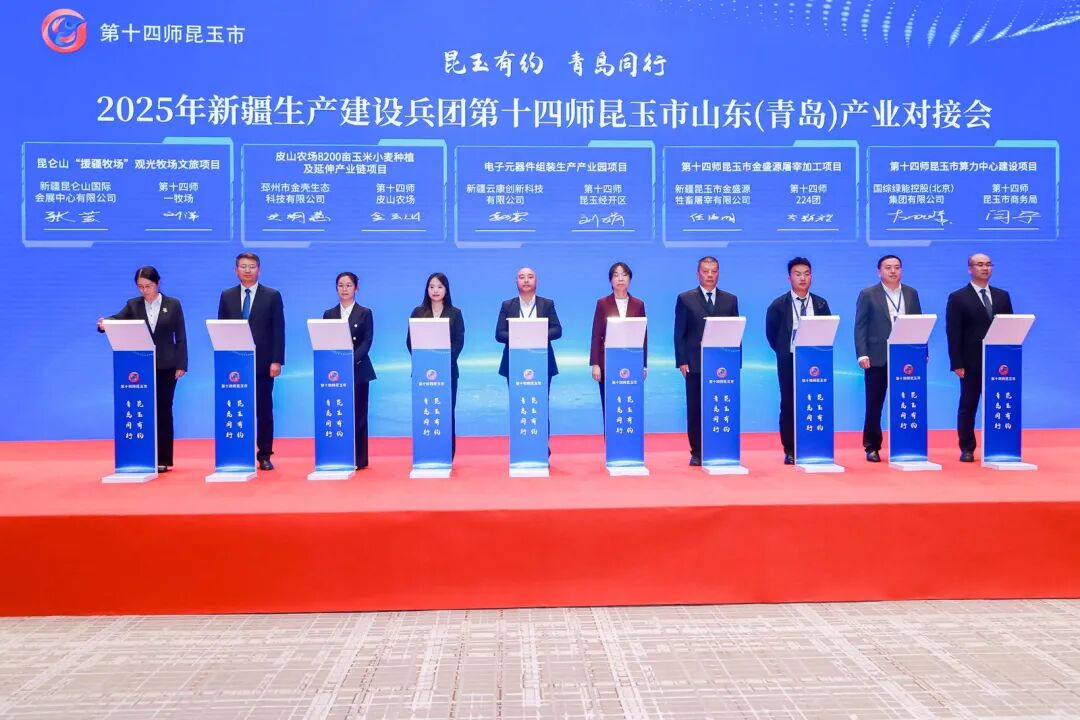 國(guó)綜綠能控股(北京)集團(tuán)有限公司(右二)與新疆生產(chǎn)建設(shè)兵團(tuán)第十四師昆玉市商務(wù)局(右一)簽署協(xié)議