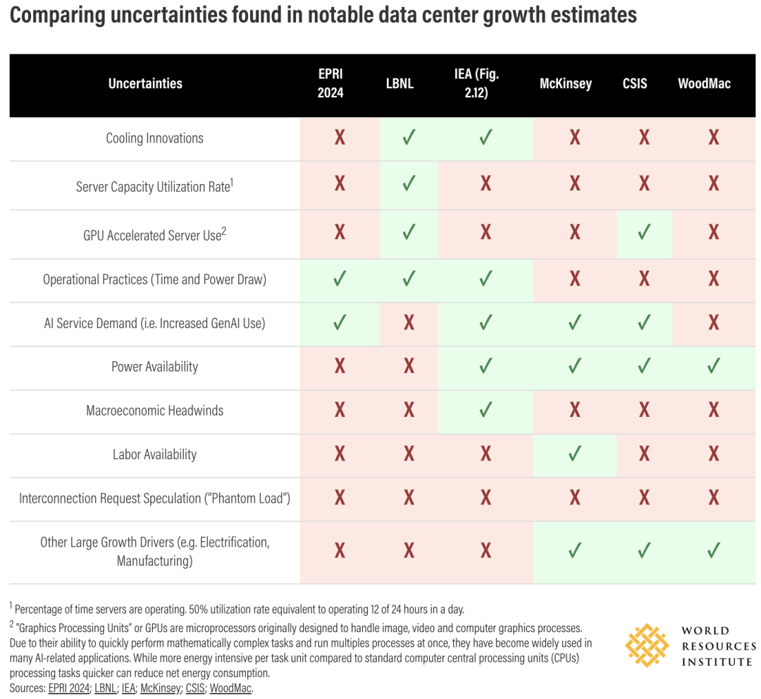 為何這些預(yù)測(cè)差異如此之大?在考慮未來(lái)數(shù)據(jù)中心需求的估計(jì)時(shí),有幾個(gè)原因需要謹(jǐn)慎考慮: