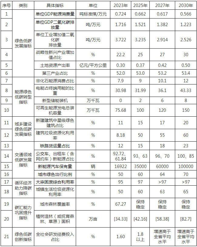 萍鄉(xiāng)市碳達(dá)峰試點(diǎn)城市建設(shè)目標(biāo)指標(biāo)表