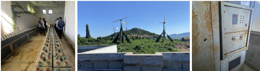 大管島面積僅0.4583平方公里,全島巖礁遍布,惡劣的海洋環(huán)境讓原有供電系統(tǒng)“雪上加霜”:四臺(tái)風(fēng)機(jī)僅一臺(tái)能運(yùn)行,光伏板因鹽堿化效率驟降,鉛酸電池虧電嚴(yán)重,即便風(fēng)光充足也僅能供電1小時(shí)。