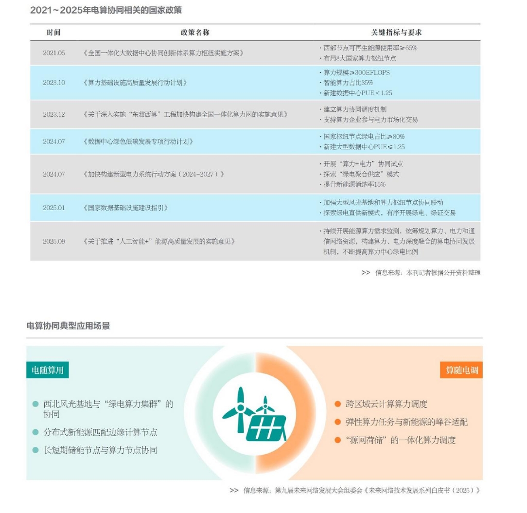國家層面的電算協(xié)同體系仍處于探索完善階段。在跨區(qū)域電力網(wǎng)和算力網(wǎng)協(xié)同方面,系統(tǒng)性頂層設(shè)計正在構(gòu)建中:交易層面,2024年發(fā)布的《電力中長期交易基本規(guī)則—綠色電力交易專章》已把數(shù)據(jù)中心綠電交易納入跨省區(qū)交易品類,累計完成數(shù)據(jù)中心綠電跨省交易42億千瓦時;但在調(diào)度層面,現(xiàn)階段“東數(shù)西算”與“西電東送”尚未形成機制合力,能源與信息領(lǐng)域的行業(yè)壁壘,導(dǎo)致跨區(qū)域、跨時間尺度的統(tǒng)一調(diào)度體系尚未建立。加之跨域算力調(diào)度可能引發(fā)的業(yè)務(wù)穩(wěn)定風(fēng)險,算力服務(wù)商等主體參與協(xié)同的積極性不強。