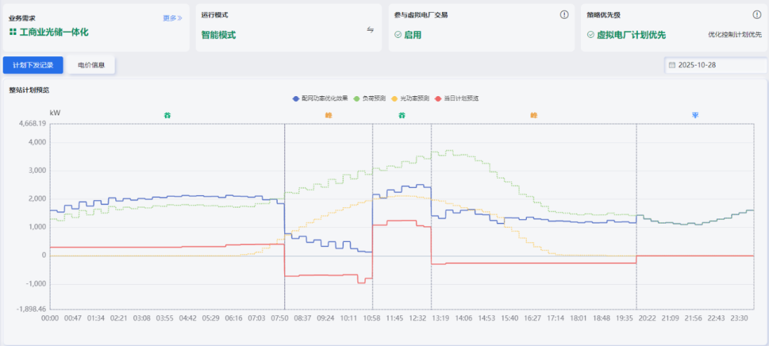 采日能源智慧運(yùn)營平臺(tái)以“智慧大腦”與“安全閉環(huán)”為雙核引擎,重新定義能源資產(chǎn)的精細(xì)化運(yùn)營與安全保障標(biāo)準(zhǔn)。平臺(tái)全新升級(jí)的綜合能源優(yōu)化控制——智能模式,深度融合先進(jìn)算法,實(shí)時(shí)解析電價(jià)信號(hào)、發(fā)電預(yù)測(cè)、負(fù)荷趨勢(shì)及設(shè)備狀態(tài),自動(dòng)生成并執(zhí)行最優(yōu)儲(chǔ)能策略。在工商業(yè)儲(chǔ)能及光儲(chǔ)協(xié)同等多維場(chǎng)景中,精準(zhǔn)實(shí)現(xiàn)削峰填谷、需量調(diào)控與動(dòng)態(tài)擴(kuò)容,不僅直接提升場(chǎng)站收益,更為未來多能協(xié)同體系的構(gòu)建夯實(shí)基礎(chǔ)。