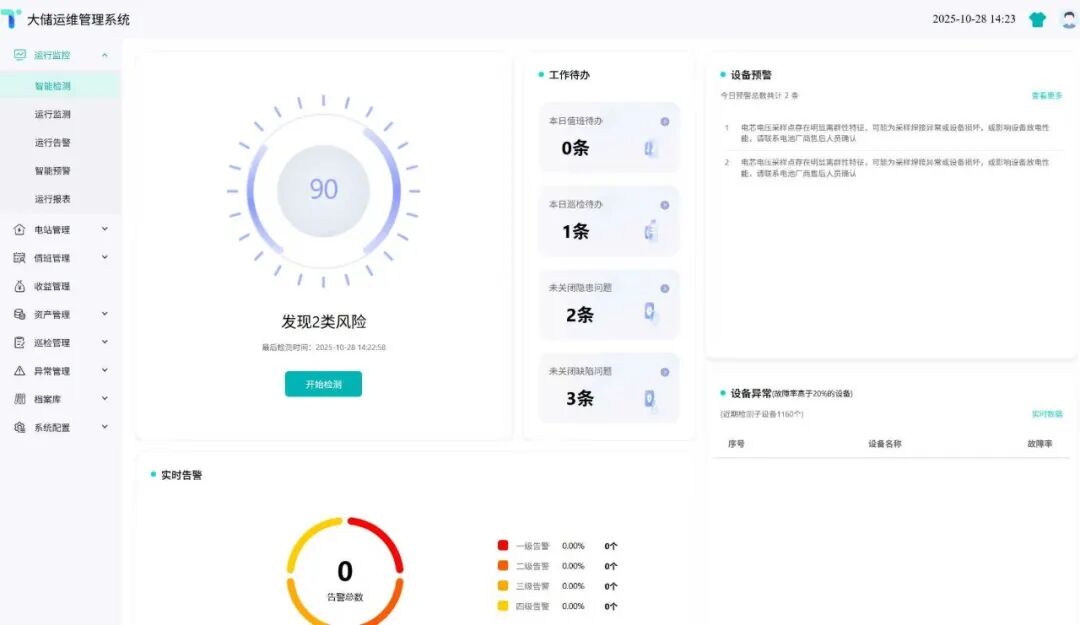 在安全保障及高效運(yùn)行維度,平臺(tái)構(gòu)筑了行業(yè)領(lǐng)先的資產(chǎn)安全防護(hù)體系,依托實(shí)時(shí)監(jiān)測(cè)與AI大數(shù)據(jù)分析能力,提前30分鐘精準(zhǔn)識(shí)別熱失控、容量衰減等潛在風(fēng)險(xiǎn),實(shí)現(xiàn)無損預(yù)警。所有預(yù)警信號(hào)直連運(yùn)維系統(tǒng),形成“采集-監(jiān)測(cè)-診斷-預(yù)警-運(yùn)維-反饋”的高效閉環(huán)管理機(jī)制,在全面保障人員與資產(chǎn)安全、延長(zhǎng)設(shè)備壽命的同時(shí),憑借精準(zhǔn)定位與快速響應(yīng),顯著提升運(yùn)維效率、降低運(yùn)營成本,最終達(dá)成資產(chǎn)安全與經(jīng)濟(jì)效益的協(xié)同最優(yōu)。