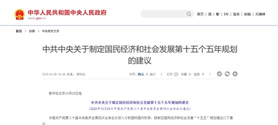 中國儲(chǔ)能網(wǎng)訊:10月28日,《中共中央關(guān)于制定國民經(jīng)濟(jì)和社會(huì)發(fā)展第十五個(gè)五年規(guī)劃的建議》(以下簡稱“建議”)正式發(fā)布。