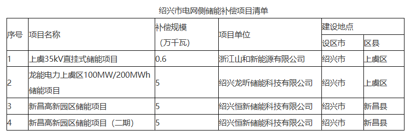 關(guān)于紹興市電網(wǎng)側(cè)新型儲(chǔ)能容量補(bǔ)償項(xiàng)目清單公示