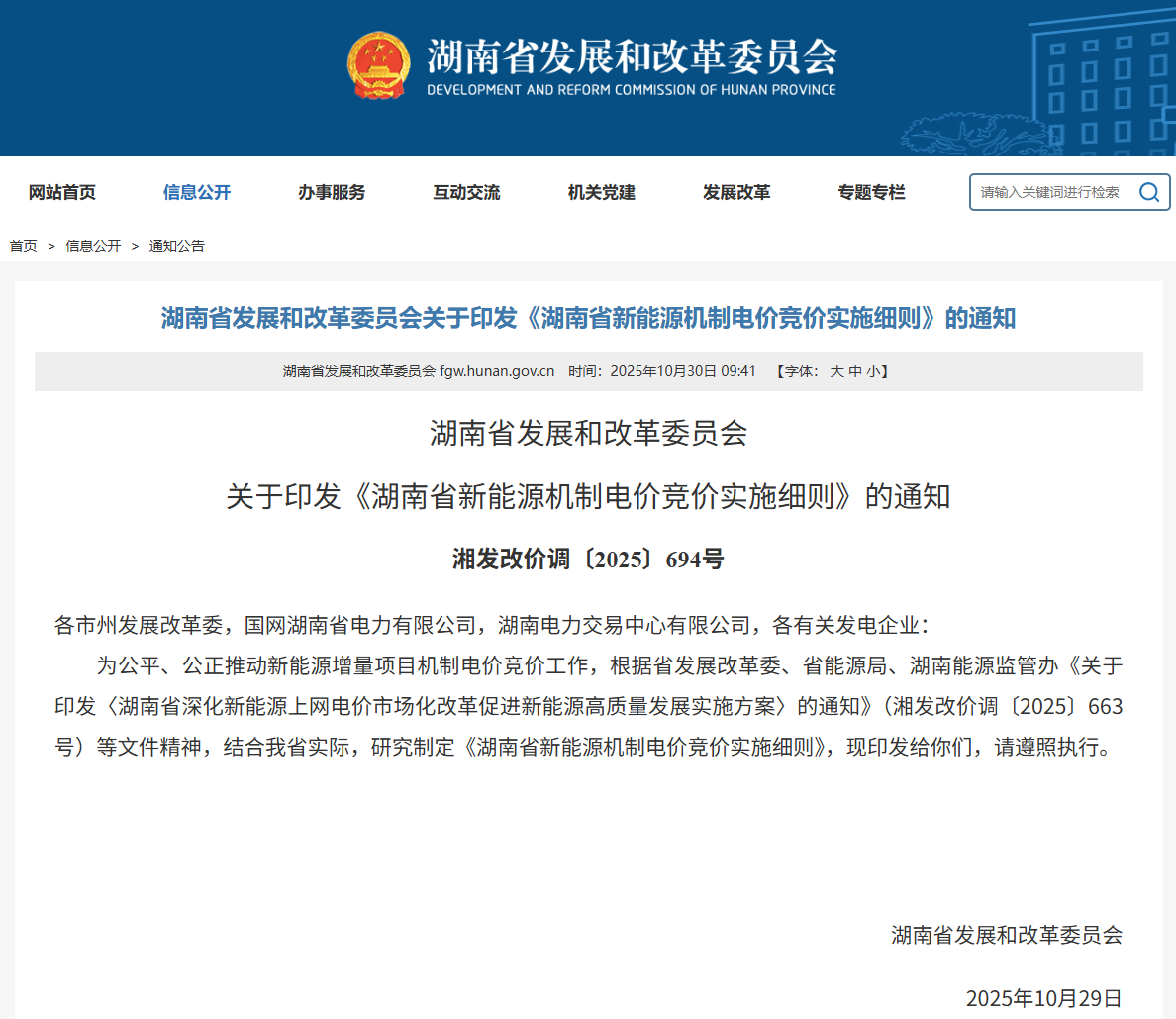 中國(guó)儲(chǔ)能網(wǎng)訊:10月30日,湖南省發(fā)改委印發(fā)《湖南省新能源機(jī)制電價(jià)競(jìng)價(jià)實(shí)施細(xì)則》。文件明確,原則上每年10月開展新能源增量項(xiàng)目納入機(jī)制電價(jià)的競(jìng)價(jià)工作。