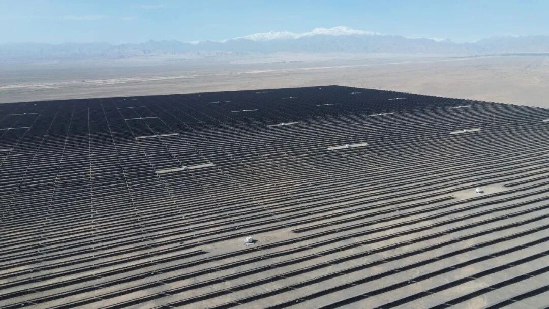 中國儲能網(wǎng)訊:在廣袤無垠的新疆喀什大地,一片浩瀚的沙海與蔚藍(lán)的光伏板交相輝映,勾勒出一幅壯麗而神秘的自然畫卷。昔日黃沙漫卷、寸草難生的荒蕪戈壁上,英吉沙500MW光伏治沙項(xiàng)目鑲嵌其間,完成了一次綠色能源與生態(tài)修復(fù)的“和諧共舞”,將這片荒漠實(shí)現(xiàn)從"沙害"到"綠能"的華麗轉(zhuǎn)身。
