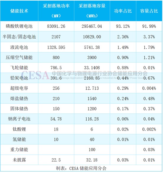 表 2025年1-9月各技術(shù)路線儲能采招落地規(guī)模及市場占比