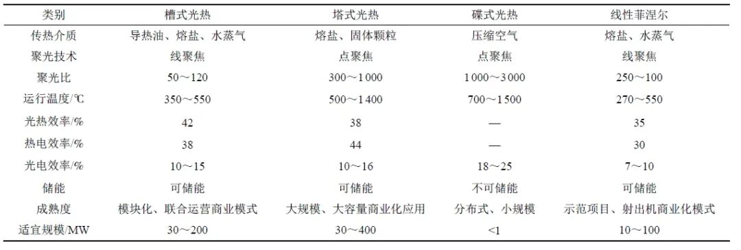 作為全球能源轉(zhuǎn)型和綠色發(fā)展的重要領(lǐng)域,太陽能光熱技術(shù)在中國(guó)的發(fā)展經(jīng)歷了從初期探索到商業(yè)化應(yīng)用的過程,不同技術(shù)類型的光熱分析對(duì)比情況如下表所示: