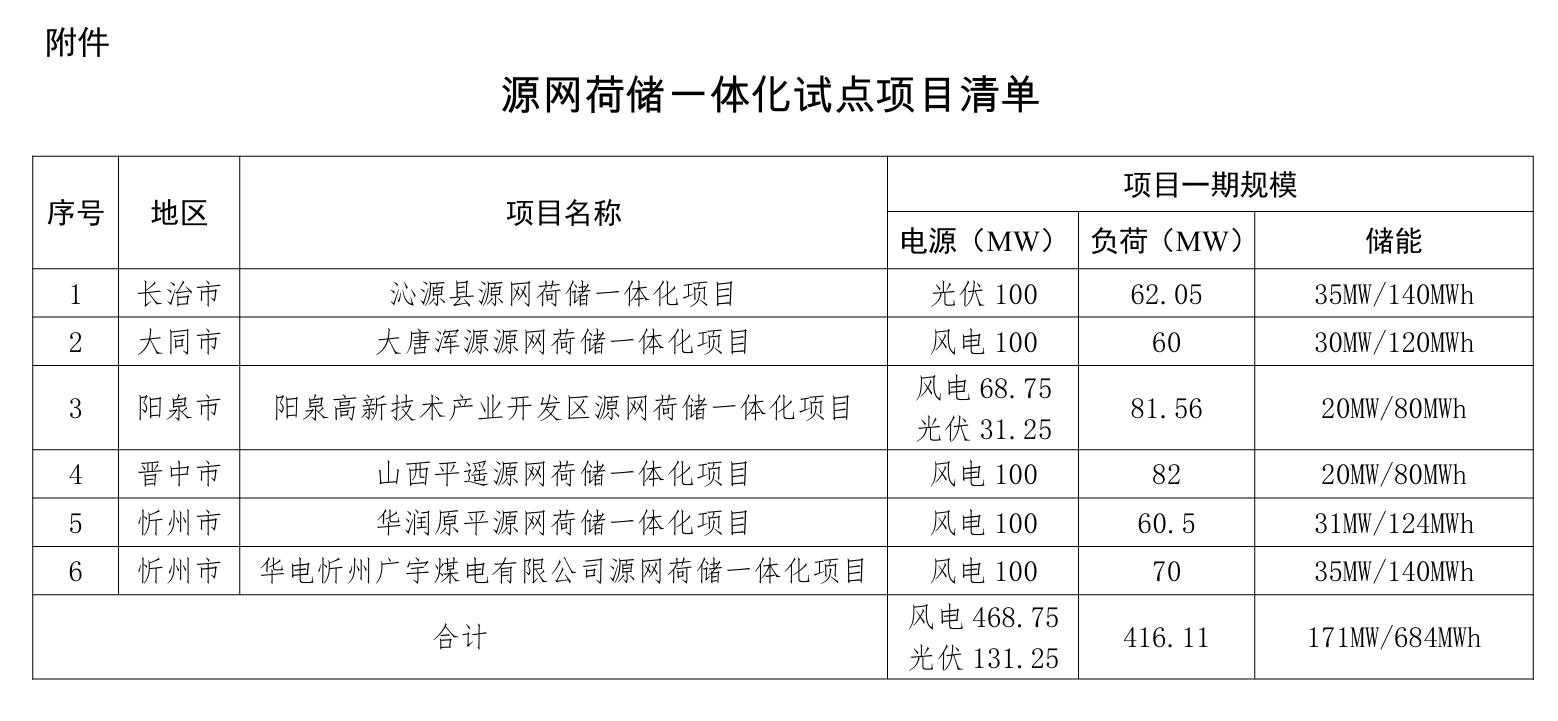 配儲(chǔ)171MW/684MWh!山西第二批6個(gè)源網(wǎng)荷儲(chǔ)一體化試點(diǎn)項(xiàng)目公示