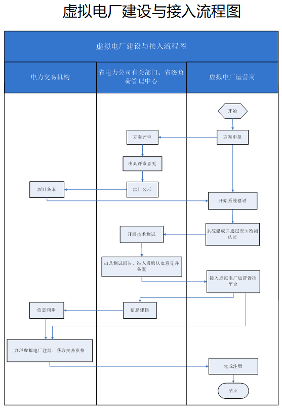 省電力公司負(fù)責(zé)虛擬電廠(chǎng)建設(shè)項(xiàng)目管理,組織開(kāi)展虛擬電廠(chǎng)方案評(píng)審、項(xiàng)目公示與備案等工作。省級(jí)電力負(fù)荷管理中心(以下簡(jiǎn)稱(chēng)“省級(jí)負(fù)荷管理中心”)組織開(kāi)展虛擬電廠(chǎng)運(yùn)營(yíng)商準(zhǔn)入資質(zhì)審核,虛擬電廠(chǎng)聚合運(yùn)營(yíng)系統(tǒng)的負(fù)荷聚合能力、調(diào)節(jié)性能及數(shù)據(jù)交互等方面的技術(shù)測(cè)試(詳見(jiàn)附件1),并按照虛擬電廠(chǎng)建設(shè)與接入流程(詳見(jiàn)附件2)組織開(kāi)展虛擬電廠(chǎng)接入服務(wù)。