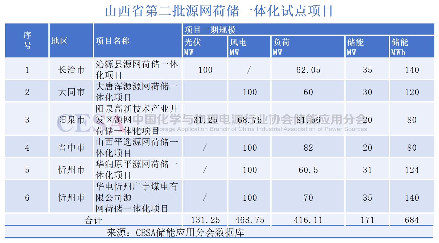 加上此次項(xiàng)目,目前山西省兩批次源網(wǎng)荷儲(chǔ)一體化試點(diǎn)項(xiàng)目共15個(gè),共配置了324.5MW/1298MWh的儲(chǔ)能容量。兩批次新能源裝機(jī)總規(guī)模1499.6MW,其中光伏587.95MW,風(fēng)電911.65MW,兩批次負(fù)荷總規(guī)模1363.11MW。