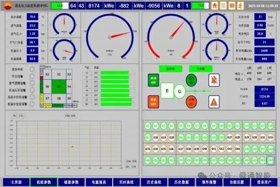 遠(yuǎn)程監(jiān)控手機(jī)APP 所示,可以直接查看全站機(jī)組發(fā)動(dòng)機(jī)熱工參數(shù)、發(fā)電機(jī)、儲(chǔ)能等電氣參數(shù)等運(yùn)行參數(shù)。