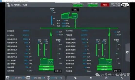 PCS 與 BMS 數(shù)據(jù):包括兩臺(tái)PCS 和 BMS 的運(yùn)行狀態(tài)、電池箱總電壓和總電流、電池箱單體的最高溫度、最低溫度、最高單體電壓、最低單體電壓、電池箱累計(jì)充放電量以及有功和無功期望值,還顯示了兩臺(tái) ESS 實(shí)時(shí)功率值、SOC值、SOH 值.