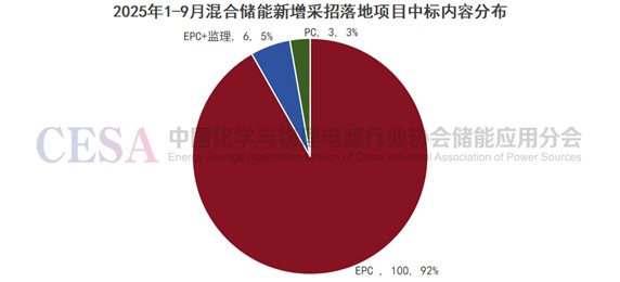 從中標(biāo)模式來(lái)看,EPC模式以100個(gè)項(xiàng)目的絕對(duì)優(yōu)勢(shì)占據(jù)市場(chǎng)主導(dǎo)地位。這種模式能高效整合資源、縮短工期、明確責(zé)任,因此成為大型混合儲(chǔ)能電站項(xiàng)目的首選。
